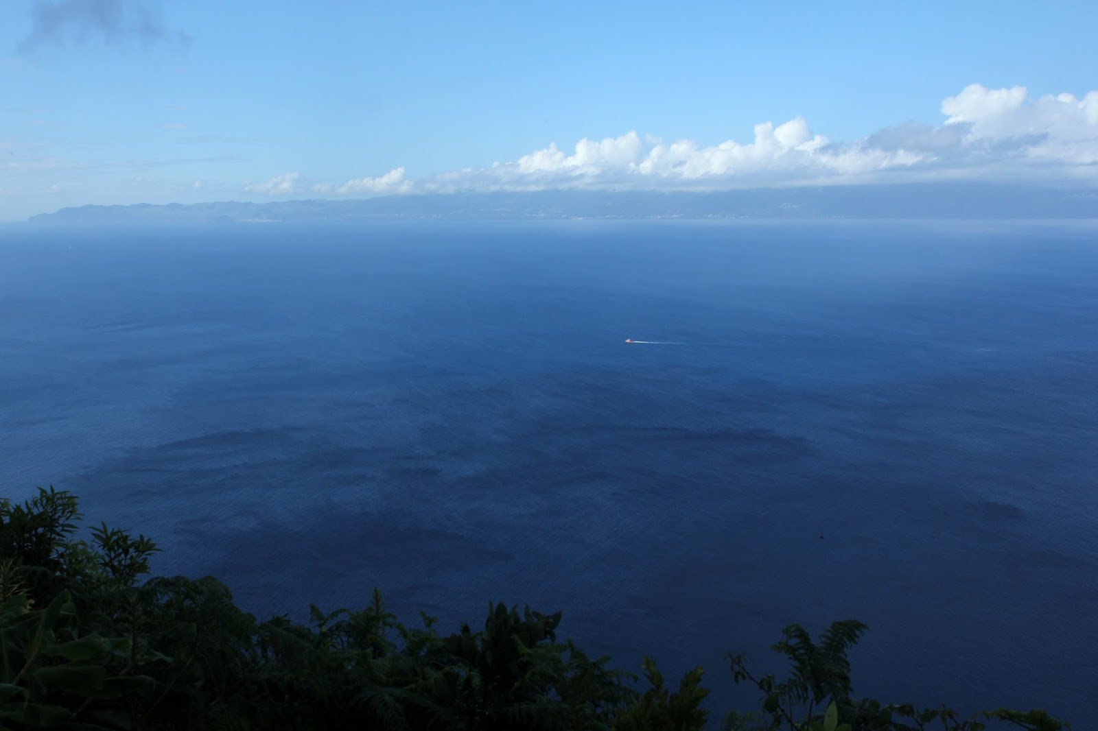 (In Faial Island, looking at Pico and S. Jorge islands. Sun rising over S. Jorge, with mist.)